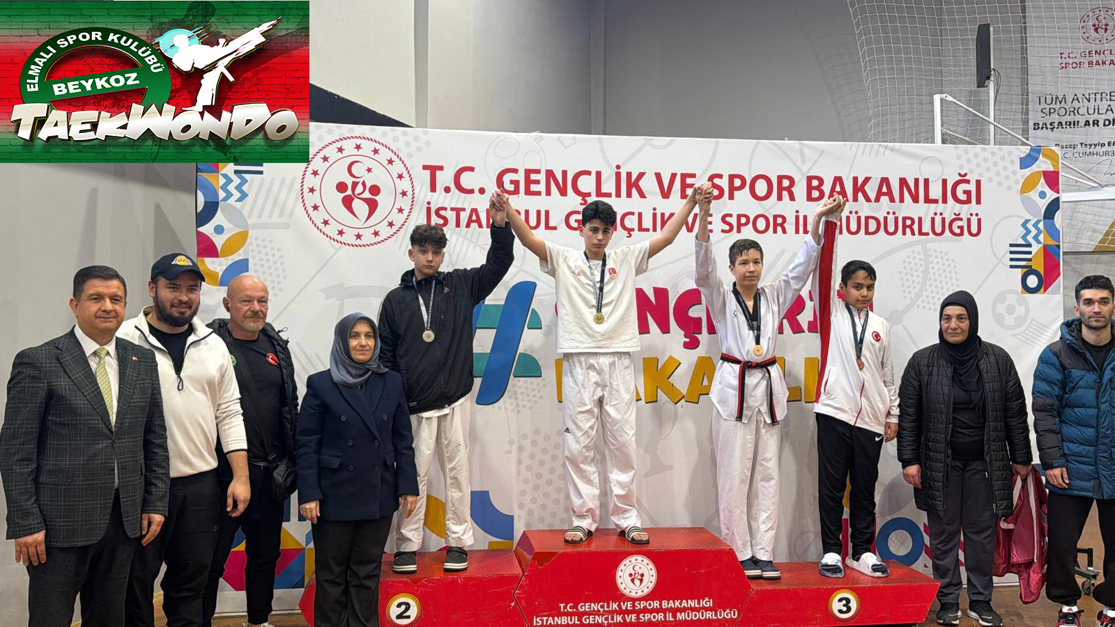 BEYKOZ ELMALISPOR TAEKWONDO TAKIMI MADALYA KÜRSÜSÜNDE